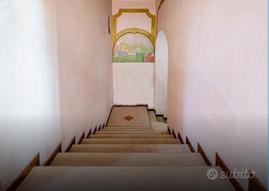 È disposto su tre livelli per complessivi 200mq e 11 locali, dove troviamo al piano terra l'entrata indipendente con cantina (all'epoca cella punitiva) e un magazzino con gli imponenti archi dell'antico chiostro, al primo piano due zone bagno indipendenti, con alcune tracce di affreschi sulle pareti e soffitti, mentre al secondo e ultimo piano, da un soggiorno spazioso, una cucina e tre camere da letto affiancati da un corridoio con balaustra dell'epoca.
