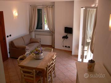 Al piano primo un bilocale su due livelli di 55 mq con salotto con angolo cottura, bagno e un terrazzino, al piano superiore la camera da letto con un terrazzo grande con vista mare. Sempre al primo piano un trilocale di 72 mq con ingresso, cucina, salotto e sala da pranzo, due camere, bagno e un terrazzino. Al piano secondo un trilocale di 82 mq con ingresso, ripostiglio, cucina abitabile, salotto, due camere, bagno e un terrazzino. Gli appartamenti al piano terra e al primo piano sono perfettamente arredati e funzionali, sono utilizzati dal 2010 come "appartamenti ad uso turistico". Sono tutti completi di elettrodomestici e delle stoviglie, nonché di ogni accessorio utile all'uso quotidiano. Un locale di disimpegno è adibito a lavanderia ed attrezzato allo scopo, oltre alla fornitura dell'attrezzatura necessaria per ogni singolo appartamento. Ogni appartamento è autonomo sia per l'ingresso che per le utility, ognuno con i propri contatori e consumi separati. Inoltre la struttura ha a disposizione un parcheggio nelle adiacenze con 4 posti auto sotto una struttura metallica con tenda ombreggiante. Dietro questo c'è anche un piccolo appezzamento di terreno a fasce sempre incluso nella proprietà.