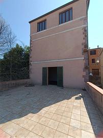 Il palazzo vanta inoltre un ampio terrazzo panoramico, accessibile dal primo piano, che regala una vista mozzafiato sui tetti del borgo e sulle colline circostanti: uno spazio ideale per la creazione di un ristorante con area esterna o di una struttura ricettiva con camere e spazi comuni.