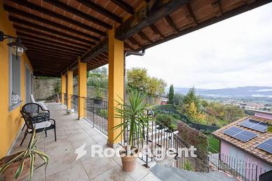 Rif:157446 - 10/03/2026 (127354039) - A due passi dal centro del paese di Reggello, sulle colline fiorentine, proponiamo in esclusiva un' elegante dimora di grandi dimensioni. Il panorama che si gode dalle importanti finestrature e dai terrazzi è assolutamente impagabile. La villa si sviluppa su tre piani con due accessi diversi. Al piano terra troviamo un grande salone, un'elegante e maestosa cucina in muratura con camino ventilato e forno a legna, una camera con bagno e cabina armadio, una camera, uno studio, una lavanderia, ed un ulteriore bagno. Al primo piano, con accesso indipendente, un grande salone con camino ventilato, una zona pranzo abitabile con una splendida cucina in muratura con vista e dispensa a scomparsa, una camera. Al piano superiore una camera con grande terrazzo, un bagno. Completa la proprietà un giardino su tre lati, un grande piazzale pavimentato con pergola e tavolo all'aperto per pranzi e cene, una ampia zona barbecue e tavolo in muratura e uno spazio attualmente adibito ad orto, ma con possibilità di realizzare una piscina fuoriterra "a sfioro" panoramica. L'immobile dispone di tutte le tecnologie più recenti come pannelli fotovoltaici, pannelli solari termici e aspirazione centralizzata. Tutte le rifiniture interne ed esterne sono di altissima qualità e gusto, le maioliche delle cucine, la pietra dei camini e delle scale, i ferri battuti delle ringhiere così come le pietre naturali che rivestono i muri di cinta, ne fanno un oggetto unico nel suo genere ed un ottimo investimento. Le tecniche di costruzione di questa villa hanno seguito le più stringenti regole antisismiche, di efficienza energetica ed isolamento acustico, tutte le fasi di costruzione sono state seguite direttamente dai proprietari. I laterizi utilizzati sono blocchi Winerberger, prodotti di assoluta qualità che uniti agli infissi in pvc a doppio vetro, i climatizzatori nell - Classe: C - IPE: 175.00 kWh/mq anno
