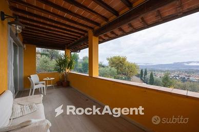 Rif:157446 - 14/04/2026 (128252578) - A due passi dal centro del paese di Reggello, sulle colline fiorentine, proponiamo in esclusiva un' elegante dimora di grandi dimensioni. Il panorama che si gode dalle importanti finestrature e dai terrazzi è assolutamente impagabile. La villa si sviluppa su tre piani con due accessi diversi. Al piano terra troviamo un grande salone, un'elegante e maestosa cucina in muratura con camino ventilato e forno a legna, una camera con bagno e cabina armadio, una camera, uno studio, una lavanderia, ed un ulteriore bagno. Al primo piano, con accesso indipendente, un grande salone con camino ventilato, una zona pranzo abitabile con una splendida cucina in muratura con vista e dispensa a scomparsa, una camera. Al piano superiore una camera con grande terrazzo, un bagno. Completa la proprietà un giardino su tre lati, un grande piazzale pavimentato con pergola e tavolo all'aperto per pranzi e cene, una ampia zona barbecue e tavolo in muratura e uno spazio attualmente adibito ad orto, ma con possibilità di realizzare una piscina fuoriterra "a sfioro" panoramica. L'immobile dispone di tutte le tecnologie più recenti come pannelli fotovoltaici, pannelli solari termici e aspirazione centralizzata. Tutte le rifiniture interne ed esterne sono di altissima qualità e gusto, le maioliche delle cucine, la pietra dei camini e delle scale, i ferri battuti delle ringhiere così come le pietre naturali che rivestono i muri di cinta, ne fanno un oggetto unico nel suo genere ed un ottimo investimento. Le tecniche di costruzione di questa villa hanno seguito le più stringenti regole antisismiche, di efficienza energetica ed isolamento acustico, tutte le fasi di costruzione sono state seguite direttamente dai proprietari. I laterizi utilizzati sono blocchi Winerberger, prodotti di assoluta qualità che uniti agli infissi in pvc a doppio vetro, i climatizzatori nell - Classe: C - IPE: 175.00 kWh/mq anno