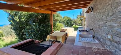 Al primo piano si sviluppa la zona notte, composta da tre camere da letto, tutte matrimoniali, panoramiche e con doppia esposizione che garantisce luminosità e una piacevole ventilazione naturale. Completa il piano una cameretta, ideale come studio o stanza per gli ospiti, un bagno con doccia e un balconcino vista mare. La proprietà è dotata di un pozzo, una cisterna, anche se collegata alla rete idrica municipale e una fossa Imhoff.