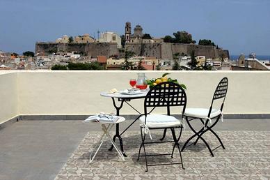 Rif:liberty (101881826) - La villa, ubicata in posizione molto ambita, nel cuore dell'isola di Lipari, ma circondata da un rigoglioso giardino che le dona privacy e fascino, si sviluppa su più livelli: il seminterrato, il piano terra, il primo piano e l'incantevole terrazzo. Al piano terra, troviamo un ampio ingresso, la cucina professionale con spogliatoio e servizio per il personale, tre sale recentemente utilizzate per la ristorazione ed i servizi igienici per gli ospiti; al primo piano un gradevolissimo ambiente comune, un piccolo ufficio e 4 camere da letto, ciascuna con il suo bagno en-suite. Dalla scala interna si accede alla suggestiva terrazza panoramica con una vista mozzafiato su tutta l'isola: dal Castello al porto di Pignataro, a monte Gallina e a Castellaro. Le finiture, frutto di una attenta ricerca della proprietà unitamente al rispetto per l'epoca di costruzione della villa, e di sapienti maestranze, includono la pavimentazione in marmo "Biancone" con eleganti intarsi di "Azul Macaubas " e di "Giallo Reale" ed anche il sapiente recupero delle cementine dei primi del secolo scorso salvate nel restauro e utilizzate per creare dei tappeti a cielo aperto nello splendido scenario del terrazzo scoperto. La struttura è stata autorizzata per l'attività di affittacamere per n. 8 posti letto e per l'attività di ristorazione per n. 60 coperti. La villa può essere pertanto impiegata come immobile residenziale privato o come struttura ricettiva. Al piano seminterrato, dove un tempo c'era la cisterna che raccoglieva l' acqua piovana, sono stati realizzati i bagni ed una deliziosa cantinetta. Sempre al deposito seminterrato è stato realizzato di fatto un mini appartamento con due camere da letto, due bagni ed un soggiorno a cui si può accedere dall'interno della villa o da un comodo ingresso esterno. Completano la proprietà due locali tecnici, nella parte - Classe: B - IPE: 175.00 kWh/mq anno
