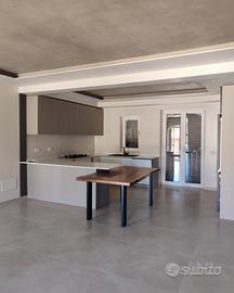 Al piano terra troviamo un elegante e luminoso soggiorno con cucina open space, caratterizzato da spazi ampi e ben distribuiti, ideale per chi ama la convivialità. Completano il livello un bagno di servizio e una comoda tavernetta, perfetta come ambiente relax, sala hobby o studio.