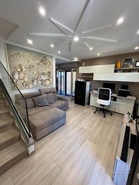 Piano primo: altro ingresso indipendente direttamente dal giardino oppure collegato direttamente agli altri due piani dalla scala interna, saloncino adibito a studio, ripostiglio, camera da letto matrimoniale con cabina armadio ad uso esclusivo, ampio bagno. E' presente un ampio terrazzo a livello, in parte coperto da patio in legno e chiuso perimetralmente da vetrate scorrevoli, destinato a palestra. Sono presenti inoltre due ampi balconi: