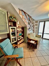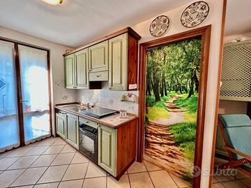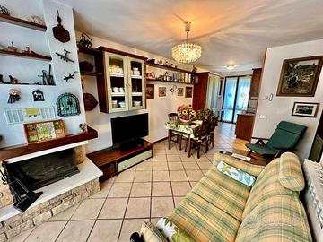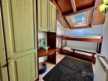 L'abitazione, completamente arredata, si sviluppa su due livelli e colpisce per l'atmosfera calda e accogliente, impreziosita da travi in legno a vista, camino e ampi spazi verdi ideali per la vita all'aperto.