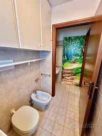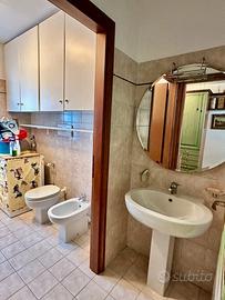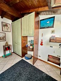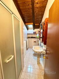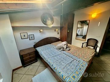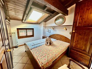Due camere da letto con travi a vista, ambienti caldi e luminosi, e un secondo bagno, ben rifinito e funzionale.