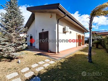 Professionecasa Paesi Etnei propone in vendita a Pedara bassa, a pochi passi da Tremestieri Etneo, precisamente in Via delle Ginestre, splendida villa singola con giardino, disposta su due livelli, che si presenta in ottime condizioni. Il giardino si estende per circa 500 mq, suddivisi in spazi verdi che comprendono vari alberi, un pozzo e piante ornamentali, una parte terrazzata adibita a posti auto e un'altra zona terrazzata con tettoia. Gli spazi interni sono così composti: al piano terra troviamo un ingresso su salone, corridoio che disimpegna due camere da letto con bagno in camera, cameretta, cucina abitabile con annesso giardino d'inverno, bagno e comoda lavanderia con doppio servizio; al piano superiore, da cui si accede tramite scala interna posta nel salone, sono presenti quattro camere da letto, un bagno, comodo ripostiglio ed un grazioso terrazzino con vista Etna e mare. Le installazioni comprendono climatizzatori, riscaldamento autonomo, pannelli fotovoltaici ed impianto di antifurto, videosorveglianza, riserva idrica di 10mila lt e vasca di irrigazione di 15mila lt. Classe energetica C.