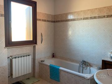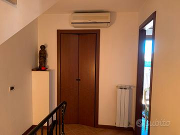 In località San Zili vi proponiamo in vendita una villetta del 2001 usata pochissimo in ottime condizioni e quasi interamente arredata. La villetta è parte di un complesso e vi si accede attraverso una strada privata. L'immobile si sviluppa su tre piani: al piano terra troviamo un portico d'ingresso che può essere utilizzato in vari modi, anche come posto auto coperto per due automobili, da qui si entra in un piccolo disimpegno: alla sinistra si trova un bagno con ampia doccia ed armadi alti per vari contenuti, poco oltre sulla destra si entra nella cucina abitabile e poi nel soggiorno. Da qui attraverso una seconda porta blindata si accede al giardino piantumato e decorato da una graziosa fontana. Al primo piano, al quale si giunge attraverso una larga scala in marmo, si trovano un'ampia camera matrimoniale con accesso al terrazzo, un camera singola adibita a studio ed un comodo bagno con vasca. Salendo in soffitta (ampiamente calpestabile) troviamo una seconda camera matrimoniale, una camera singola ed un terzo bagno. Ogni pianerottolo ospita un armadio a muro/contenitore di attrezzatura varia per la pulizia o altro ed un condizionatore (piano terra escluso). Completa l'offerta un posto auto scoperto che si trova di fronte all'ingresso della villetta, oltre la stradina di accesso.