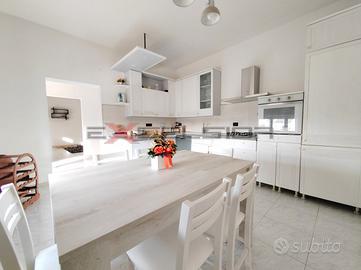 L'appartamento situato al primo piano, a cui si accede da scala esterna, è composto da ingresso, disimpegno, salotto con travatura a vista, ampia e luminosa cucina, comodo ripostiglio/lavanderia con annesso poggiolo, bagno con box-doccia e due camere da letto matrimoniali. Recentemente ristrutturato e climatizzato.