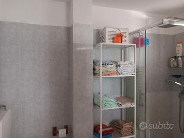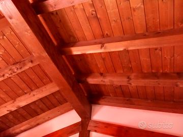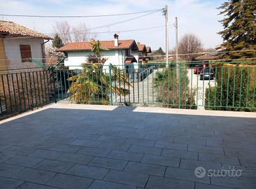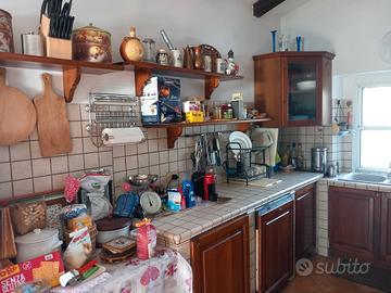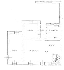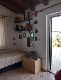 Luminosissima, e con spazi abitativi generosi: dall'ingresso si accede al salone, arredabile a due zone, separato dalla cucina, in muratura, con delle nicchie allestite ad arredo in legno, e dalla parte opposta del salone la scala che vi conduce al piano superiore, che si apre su una grande stanza-disimpegno, ideale per uno studio con un bel salotto, una matrimoniale con doppia finestra ed un ulteriore stanzetta, finestrata, con accesso al terrazzone, superarredabile. Bagno con doccia al pianoterra. Lo scoperto consente, in alternativa all'uso di un giardino, di parcheggiare anche due/ tre auto all'interno.
