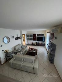 Al piano terra, l'ingresso sotto il portico conduce a un ampio e luminoso soggiorno; Segue una cucina abitabile con accesso diretto ad un splendida pergola tutta finestrata e poi allo giardino, completamente piantumato con piante ornamentali ed attrezato ideale per pranzi o per chi desidera uno spazio sicuro per i propri animali. Completa il piano un bagno finestrato e doccia.