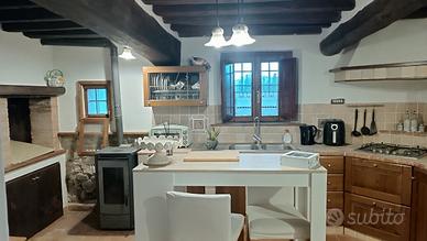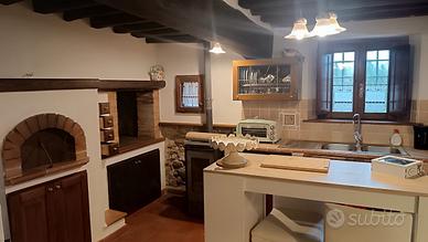 PISTOIA loc.Bottegone : casa semi-indipendente (libera su 3 lati) di circa 140mq disposta su 2 livelli. Cancellone che accede a resede privata con ampio spazio per l'automobile. Ingresso disimpegno al piano terra che divide la cucina-tinello dalla zona living. La grande cucina è ben attrezzata, dotata di camino, forno a legna in muratura, stufa a pellet. La zona living è composta da doppio salotto, per angolo tv e sala da pranzo. Un'ampia stanza multiuso con entrata indipendente dalla resede ed un bagno di servizio completano il pratico piano terra. Dalla sala da pranzo si accede al piano superiore, dove troviamo un'altra bella sala, 2 camere matrimoniali con aria condizionata, un ampio bagno con vasca. Il riscaldamento è autonomo con caldaia a metano, ma la stufa a pellet al piano terra aiuta a riscaldarlo più facilmente. Tutto l'ambiente è caratterizzato da uno stile toscano di buon gusto, con pavimenti e scale in cotto, soffitto in travi, archi e particolari in mattoni a faccia vista, pregiati infissi in legno, lucernari. Il tutto si presenta di recente riadattamento ed ottimamente rifinito, ed una bella impressione di calorosa intimità. La possibilità della stanza con accesso indipendente, come pure la suddivisione con la zona notte corredata da ulteriore salottino concedono la possibilità di un utilizzo plurimo, ad esempio adatto ad un nucleo familiare dove uno o più componenti possono godere di una certa indipendenza e privacy. Il contesto è tranquillo e silenzioso ma non isolato, comunque vicino ai servizi ed ai nuclei abitati. APE classe G. Prezzo 243.000 € - Tel. 335-7508292
