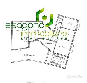 Nella zona notte, abbiamo la matrimoniale e le due singole, la sala da bagno e il ripostiglio.