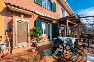 Thinkhome propone in vendita nel comune di Poli, precisamente in via Colle Spina, una porzione di bifamiliare con giardino. La soluzione sviluppa una metratura totale di 160 mq circa ed è disposta su tre livelli. Al piano terra troviamo un ingresso, salone con angolo cottura con uscita sul terrazzo, bagno e camera da letto adibita a studio. Al piano primo troviamo un ingresso, due camere da letto, di cui la matrimoniale con uscita sul balcone e bagno. Infine nel piano seminterrato, con due pareti completamente fuori terra troviamo un ampio salone con camino, cucina, ripostiglio, bagno e ampio disimpegno. L'immobile si presenta in ottimo stato, tutti gli ambienti sono finestrati e di conseguenza risultano essere molto luminoso e arieggiati. Completa la proprietà il terreno di circa 2500 mq pianeggiante e recintato. Utenze acqua di pozzo, gas bombolone e fossa biologica.