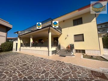 Distribuzione villa piano primo alto: ampio ingresso, salone c/camino, cucina abitabile, 3 camere matrimoniali, 2 ampi bagni di cui uno completamente ristrutturato in gres porcellanato effetto calacatta gold di alto pregio oltre a ripostiglio, totale mq. interni 160 ca. oltre 100 mq. di terrazzi.