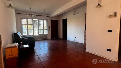 In posizione comoda a tutti i porzione indipendente sui 3 lati disposta tutta al piano terra...l'abitazione si compone di ingresso sull'ampio soggiorno con caminetto ampia zona di cottura disimpegno camera doppia, camera matrimoniale con stanza guardaroba/3^ stanza con wc ampio bagno con doccia grande magazzino di circa 35 mq disposto lungo tutta l'abitazione e garage di 15 mq. Scoperto di circa 250 mq e terrazzone pavimentato di circa 100 mq sovrastante tutta l'abitazione.
