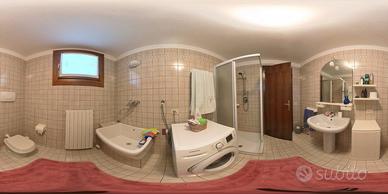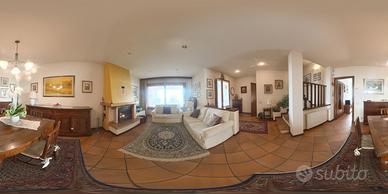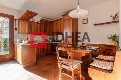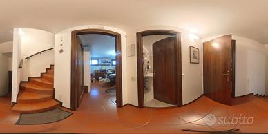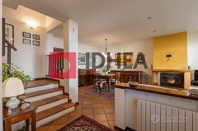Al piano terra si trova un luminoso soggiorno di 33 mq con caminetto e la cucina separata di 14,5 mq, salendo tramite le scale, il piano rialzato accoglie la camera di 8,6 mq, la camera doppia di 12,8 mq con balconcino privato, un bagno finestrato con vasca e la camera matrimoniale padronale di 17,6 mq anch'essa con balconcino privato. A concludere la zona notte, al primo e ultimo piano è presente un vano di 60 mq attualmente al grezzo da poter ricavare un appartamento totalmente indipendente, con predisposizione per un bagno e angolo cottura.
