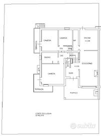 L'immobile dispone di un giardino su tre lati di circa 300 mq, tramite il cancello elettrico si accede alla proprietà privata che comincia da un magnifico portico esterno, ottimo per pranzi estivi con gli amici o come zona di relax all'aria aperta.