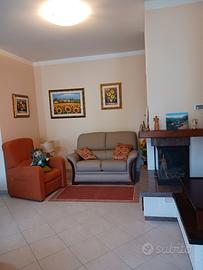 Vendita porzione bifamiliare di circa 90mq composto da una matrimoniale una camera singola salone cucina due bagni. Balcone perimetrale completo da tende da sole. Porticato verandato e garage e giardino privato.