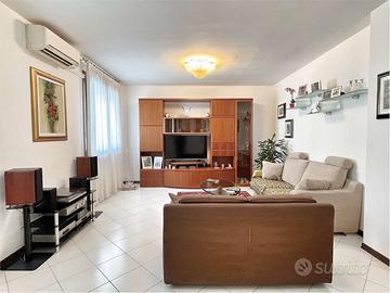 Ubicata all'interno di un complesso residenziale in centro paese. Molto luminosa in quanto esposta a est ed ovest. Al piano rialzato entrata da portico, soggiorno, grande cucina di 17 mq con uscita in terrazza abitabile, bagno finestrato rifatto nel 2024 e ripostiglio lavanderia. Al piano superiore camera matrimoniale con bagno padronale, camera doppia di quasi 13 mq, camera singola, ulteriore bagno e due poggioli. Al piano seminterrato garage di oltre 30 mq, taverna finestrata con camino e cantina. Di recente è stato fatto un intervento di riqualificazione energetica, con cappotto termico da 14 cm, serramenti nuovi in pvc con triplice vetro, panelli fotovoltaici di 6 kw con batterie di accumulo da 20 kw, colonnina per ricarica auto elettrica e impianto di riscaldamento ibrido con pompa di calore e caldaia a condensazione.