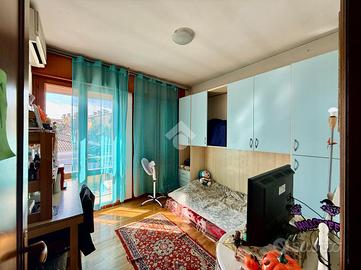 Ampio ingresso su piano ammezzato, soggiorno luminoso con due balconi di riferimento e cucina abitabile separata.