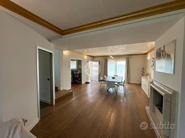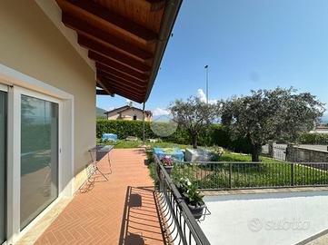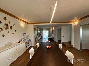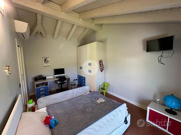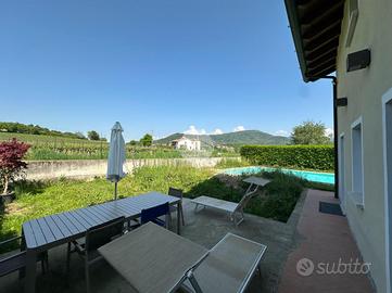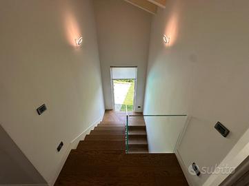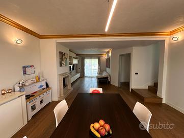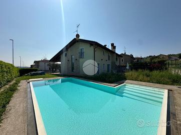 Se stai cercando una soluzione indipendente in una delle zone più ricercate e panoramiche di Torbiato di Adro, questa splendida villa bifamiliare potrebbe essere la tua prossima casa. Immersa in un ampio giardino esclusivo, la proprietà vanta una suggestiva piscina a sfioro interrata, perfetta per godersi momenti di relax e convivialità con amici e famiglia. L'immobile si sviluppa su tre livelli, offrendo spazi luminosi e funzionali. Al piano terra troviamo un luminoso open space con grandi vetrate che si affacciano sul giardino, una cucina separata, un disimpegno, un bagno di servizio e un locale ad uso studio. Gli interni sono impreziositi da un pregiato parquet, mobili di design contemporaneo e finiture di alta qualità. Salendo al primo piano, si accede alle camere da letto, tra cui una matrimoniale con terrazzo e cabina armadio, una doppia e un'altra camera, tutte pensate per garantire massimo comfort. Al piano interrato, invece, troviamo un ampio rimessaggio che può ospitare fino a tre auto, una lavanderia, una taverna attrezzata con camino e una dispensa. La proprietà è dotata di caldaia nuova, riscaldamento a pavimento, basculante automatizzato e cancello elettrico, offrendo praticità e sicurezza. Questa villa rappresenta la soluzione ideale per chi desidera vivere in un contesto esclusivo, con ampi spazi esterni e finiture di pregio. Non lasciarti sfuggire questa opportunità: contattaci per ulteriori informazioni o per prenotare una visita!