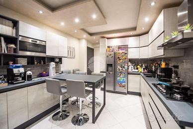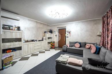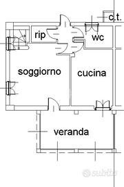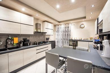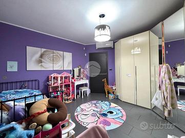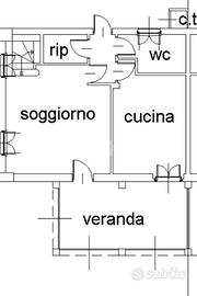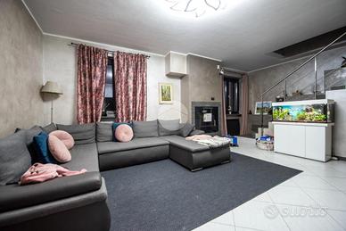 La porzione di bifamiliare è stata costruita nel 2005, libera su tre lati e sviluppata su due livelli. L'ingresso si apre su un ampio soggiorno luminoso, impreziosito dal camino e dalla scala a vista, con accesso diretto alla veranda sfruttabile anche durante la stagione invernale. Adiacente si trova la cucina abitabile, anch'essa collegata alla veranda, mentre il primo bagno del piano terra è dotato di doccia.