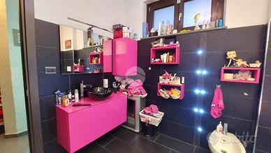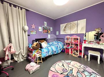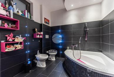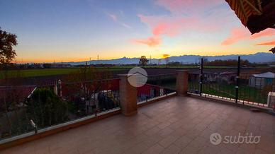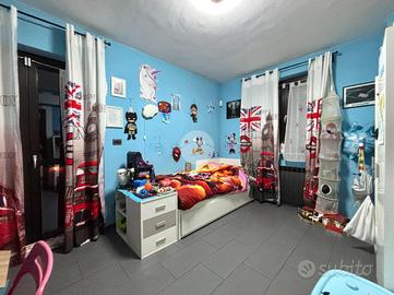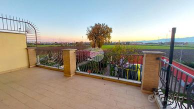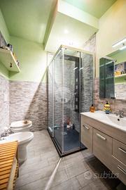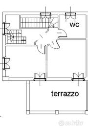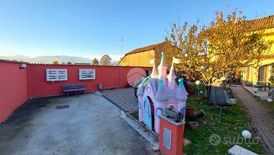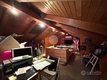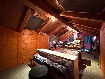Al piano superiore si sviluppa la zona notte con due camere matrimoniali, una delle quali affacciata su un terrazzo con splendida vista sulle montagne. Il bagno del piano è particolarmente spazioso e completo di vasca, mentre il disimpegno è stato organizzato come pratica lavanderia con una comoda struttura in muratura dedicata alla stiratura. Una scala a chiocciola conduce al sottotetto, attualmente utilizzato come terza camera da letto, arricchito da una profonda intercapedine ideale come cabina armadi.