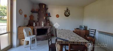 La disposizione su più piani permette di organizzare gli ambienti in modo versatile, adattandosi alle diverse esigenze abitative, esso è composto nel seguente modo: ampia sala , cucina abitabile con camino, bagno con vasca e due camere da letto al primo piano. Abbiamo inoltre un vano adibito a cantina o locale deposito sito al piano terra e altri 2 locali usati come piccolo rustico sempre al piano terra. Completano la proprietà un fienile e terreno di 2000 mq.