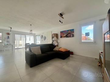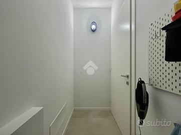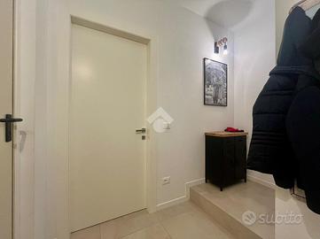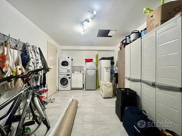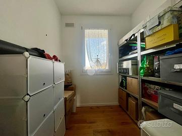 L'abitazione è sviluppata su due livelli: al piano terra troviamo soggiorno con angolo cottura e disimpegno che conduce al primo bagno della casa e al garage, vantando un invidiabile scoperto privato. Salendo le scale il primo piano è composto dal secondo bagno e le tre camere da letto matrimoniali di cui una con cabina armadio. L'abitazione è circondata da un poggiolo che si allarga sulla camera padronale formando un ampio terrazzo.
