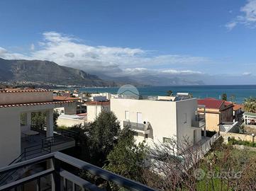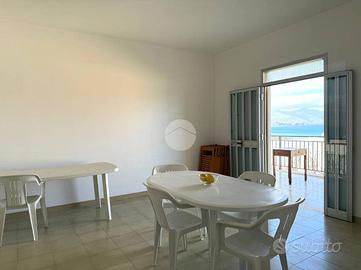 -al primo piano troviamo soggiorno e cucina abitabile con veranda vista mare di 20 metri quadrati, due camere, bagno e lavanderia;