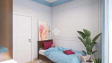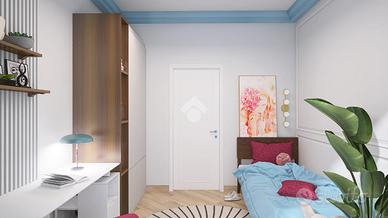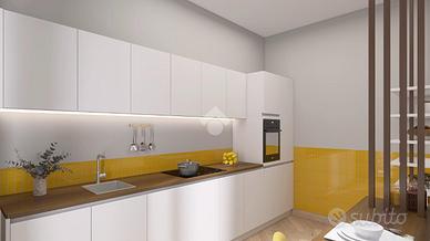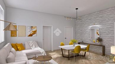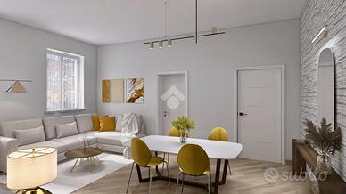 Il completo recupero dell'intero fabbricato, vedrà la ristrutturazione integrale di ogni spazio. L'appartamento in oggetto è ubicato al piano primo e possiede 4 balconi. Libero su tre lati e particolarmente esposto al sole, l'immobile avrà accesso attraverso la porta blindata sull'ampio soggiorno living. Adiacente a quest'ultimo sarà presente la cucina abitabile che avrà accesso al primo balcone. Il soggiorno, caratterizzato dagli ampi spazi e, dalle due finestre che ospita al suo interno, consentirà la possibilità di accedere al disimpegno che raggiunge le prime due camere da letto. Entrambe avranno rispettivamente il proprio balcone privato. Adiacente ad esse sarà presente il primo grande bagno finestrato, all'interno del quale sarà posata la doccia. A precedere il servizio igienico sarà l'antibagno, che ospiterà lavatrice ed asciugatrice. Un secondo disimpegno, accessibile anch'esso dalla zona giorno, porterà al secondo bagno ed alla terza ed ultima camera da letto che avrà accesso al quarto balcone. Valorizzato dalle dimensioni dei vari locali, l'appartamento verrà consegnato finito in ogni dettaglio con le relative dichiarazioni di conformità degli impianti tecnologici. Al piano terreno, sarà presente il comodo e rarissimo box auto di proprietà. Inserito in un contesto di sole due unità abitative, privo di amministratore e di spese condominiali, l'appartamento avrà di pertinenza anche una grandissima cantina. Il riscaldamento autonomo e l'acqua calda sanitaria, verranno gestiti entrambi dalla nuova caldaia a condensazione. Posizionato nel pieno centro di Alpignano, comodissimo ad ogni servizio di prima necessità, l'immobile sarà ultimato e consegnato nell'estate del 2026. L'assenza di amministratore e, di spese condominiali, rendono l'immobile particolarmente interessante.