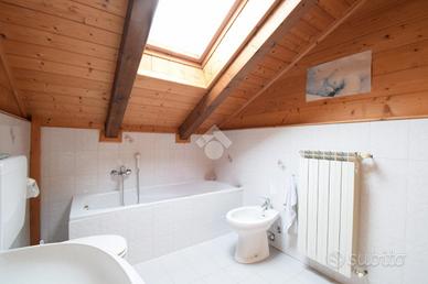 Il piano primo mensardato è suddiviso in quattro spazi: una camera matrimoniale con balcone esposto ad Est, una camera doppia ed una singola sul lato Sud e uno spazioso bagno con vasca sul lato Nord.