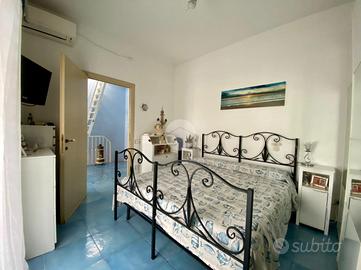 La villa è articolata su due livelli, al piano terra troviamo: il soggiorno, un ampio angolo cottura, camera matrimoniale e bagno con box doccia, al primo piano vi sono 2 camere da letto matrimoniali, un bagno finestrato con box doccia ed un ampio terrazzo con pergotende dal quale si vede il mare.