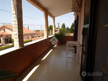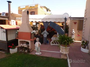 Via Nievo, occasione in contesto residenziale abitato tutto l' anno, disponiamo di una villa Bifamiliare di ampia metratura perfetta per chi sta cercando un immobile da vivere per due famiglie essendo la villa suddivisa catastalmente in due comodi appartamenti entrambi con accessi indipendenti. La villa che negli anni è stata ristrutturata è stata pensata in ogni dettaglio e con ogni confort per essere abitata tutto l'anno, dispone di doppia entrate sia pedonale che carrabile, giardino di 170 mq parte prato parte pavimentato attrezzato con barbecue in muratura, tre ripostigli esterni, area relax coperta da gazebo dove poter mangiare e rilassarsi. L' appartamento al piano terra di 90 mq. È composto da: ingresso, ampio salone, disimpegno, cucina di 19 mq con camino e dispensa porta finestra con accesso diretto al giardino , due camere matrimoniale e bagno. Tramite scala esterna si accede al secondo appartamento composto da: salone con accesso al terrazzo di 18 mq, tinello con angolo cottura finestrato, camino, dismpegno di 13 mq, due camere matrimoniali di cui una servita da terrazzo, cameretta e bagno con doccia. L' appartamento è dotato di infissi in legno pvc doppio vetro, zanzariere, recente pavimentazione, condizionatori C/F e impianto di allarme. Depandance di 25 mq, monolocale rifinito e accogliente servito da sala con cucina a vista, termocamino e bagno con box doccia, soffitto a travi in legno e infissi a scorrimento aggiungono un terzo ambiente da vivere a questa villa. Magazzino con lavatoio, attacco per gli scarichi dell'acqua dove è installata anche la caldaia a condensazione, taverna e legnaia. Completa la proprieta' il Box auto e una tettoia in legno per poter parcheggiare fino a tre auto. Le soluzioni sono termoautonome con metano diretto, pozzo per l' irrigazione del giardino e pannelli solari. Adiacente ai servizi pubblici e commerciali facilmente raggiungibili a piedi.
