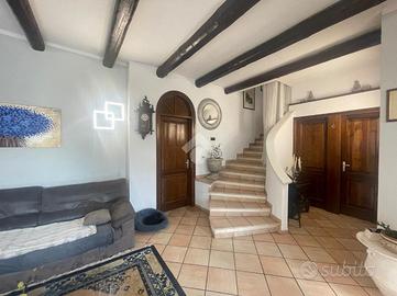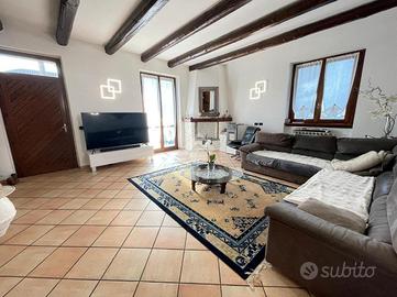 Nel comune di Arconate, proponiamo in vendita una porzione di bifamiliare di 256 mq, ideale per chi cerca una soluzione abitativa signorile. L'immobile, costruito nel 1994, è libero sui tre lati e si trova in una zona tranquilla, garantendo privacy e serenità. La casa è disposta su due ampi livelli, offrendo spazi ben distribuiti e funzionali. Al piano terra troviamo un luminoso soggiorno con predisposizione camino, perfetto per momenti di relax. La cucina è abitabile, oltre due bagni ed una camera da letto. Al piano superiore, troviamo un ampio disimpegno che conduce alle due camere matrimoniali di cui una dotata di cabina armadio ed il bagno padronale. Due balconi ed un terrazzo aggiungono ulteriore spazio esterno. Al piano seminterrato la taverna di mq 100 è luminosa, oltre locale caldaia e due ripostigli. La proprietà include un giardino privato di mq 230 e un box doppio in larghezza, ideale per chi necessita di ampio spazio per le auto. Una soluzione abitativa che coniuga eleganza e funzionalità.