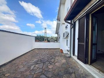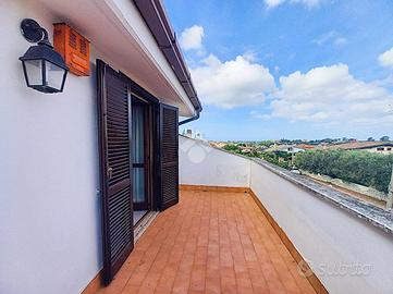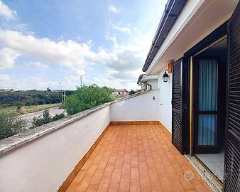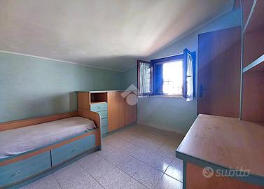 Salendo al piano superiore la zona notte è composta da una comoda camera matrimoniale con terrazzo, un'ampia cameretta, entrambe dotate di armadio a muro in legno ed il secondo bagno finestrato con vasca.