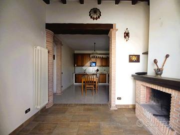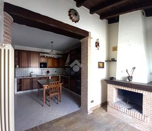 Entrando al piano terra rialzato ci accoglie il soggiorno luminoso con camino, cucina abitabile con ulteriore camino ed accesso allo spazio esterno e bagno finestrato con doccia e finestra.