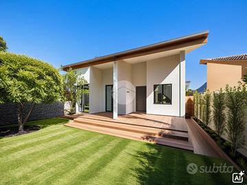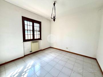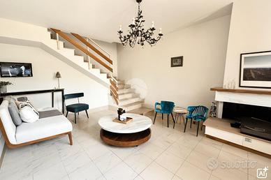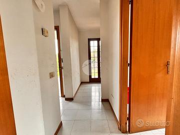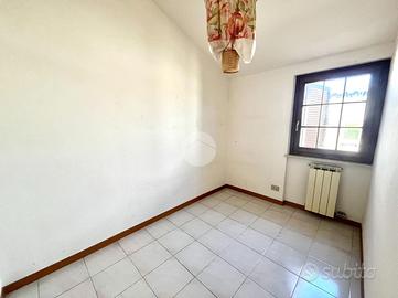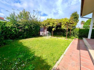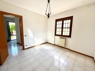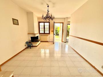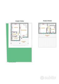 Porzione di bifamiliare di 70 mq su due livelli. Piano terra di 45 mq composto da soggiorno con camino, cucina, disimpegno, camera e bagno. Piano primo di 25 mq composto da camera, studio, disimpegno e bagno. Balcone di 10 mq, veranda di 18 mq e giardino di 100 mq