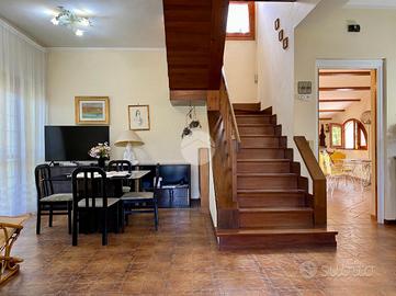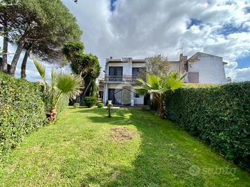 Nuova California- via Toce- proponiamo in vendita porzione di villa bifamiliare su due livelli, con ampio giardino privato, in parte verde e in parte mattonato, ideale per vivere al meglio gli spazi esterni. Nel giardino è possibile parcheggiare comodamente due auto all'interno della proprietà e organizzare pranzi e cene all'aperto in totale privacy. L'immobile si sviluppa su due livelli. Al piano terra, entrando, ci accoglie una prima zona con camino, perfetta come ulteriore area living. Proseguendo troviamo un secondo soggiorno anch'esso con camino, cucinotto a vista e bagno con doccia privo di finestra. Mediante un'ampia scala in legno con corrimano si accede al piano superiore dedicato alla zona notte, composta da tre camere matrimoniali: due con balcone comunicante e una con balcone indipendente. Due camere dispongono di armadi a muro, oltre a un ulteriore armadio a muro presente nel disimpegno. Completa il piano un bagno con vasca e finestra. L'abitazione è dotata di riscaldamento autonomo e pannello solare per la produzione di acqua calda, garantendo comfort e attenzione ai consumi. Soluzione ideale sia come prima casa che come casa vacanze. L'immobile dista circa 1,5 km dal mare ed è situato in zona residenziale tranquilla, vicino al centro di Tor San Lorenzo, dove sono presenti tutti i principali servizi di prima necessità: supermercati, bar, farmacia e fermata del bus. INFORMAZIONI IMMOBILI: - INFISSI: vetro singolo legno, grate - STATO IMMOBILE: buono - RISCALDAMENTO: metano -VARIE: portone blindato, caldaia a condesazione, pannello solare, pale elettriche, tende da sole, posti auto interni Le presenti informazioni non costituiscono elemento contrattuale.