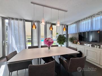 L'immobile si sviluppa su più livelli, offrendo spazi ampi e ben distribuiti. Tra i punti di forza, una PISCINA INTERRATA che garantisce momenti di relax e svago, la taverna di 130 mq, dotata di una palestra, rappresenta un ambiente ideale per il fitness e il benessere, un elegante portico di 20 mq. coperto e riscaldato consente di godere degli spazi esterni in ogni stagione. Le finiture di pregio caratterizzano ogni ambiente, conferendo un tocco di raffinatezza. Il riscaldamento a pavimento assicura un comfort termico ottimale, mentre i locali climatizzati offrono un ambiente fresco e accogliente durante i mesi più caldi.