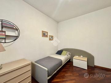 Proseguendo nel dispimpegno, troviamo la camera matrimoniale, la cameretta e il bagno finestrato servito da Box doccia.
