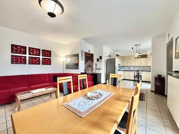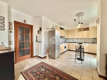 All'ingresso dell'abitazione troviamo l'ampio soggiorno con angolo cottura due grandi porte finestre che donano tanta luminosità all'intero ambiente.