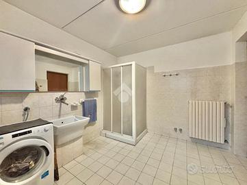 Sempre dal disimpegno, tramite scala in muratura, si accede al locale interrato dove troviamo la taverna finestrata, il bagno lavanderia e l'accesso diretto al box doppio in lunghezza.