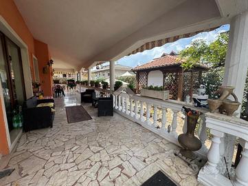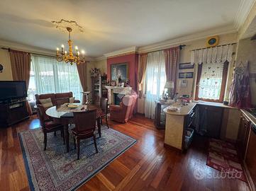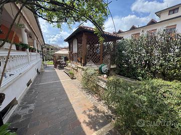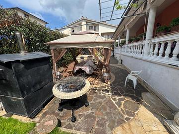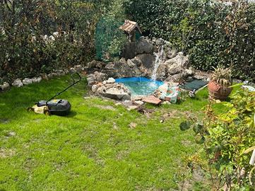 BORGO PINETA a pochi passi da tutti i servizi, scuole, supermercati e verde pubblico attrezzato, APPARTAMENTO IN BIFAMIGLIARE completamente indipendente con ingresso singolo, giardino esclusivo, ampio portico di circa 50 mq e zona relax/barbecue. L'immobile posto al piano Terra è composto da: ingresso, ampio soggiorno, ampia cucina abitabile in muratura con raffinato camino e dispensa, 2 camere matrimoniali, una camera singola, 2 bagni di cui uno con doccia e uno con doccia e vasca idromassaggio. L'appartamento presenta pregiate rifiniture, con materiali di prima scelta e parquet su ogni stanza. Completa l'immobile un ampio garage al piano interrato per 3 posti auto.