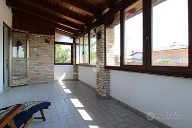 La veranda dalle generose dimensioni permette di usufruire di un ambiente silenzioso e luminoso grazie alle numerose finestre.
