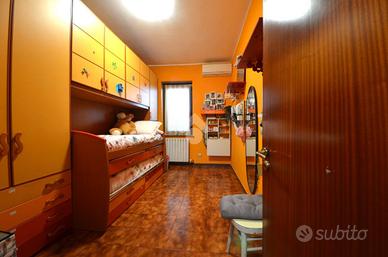Un comodo corridoio separa la zona giorno dalla zona notte, dove troviamo le due camere matrimoniali, la cameretta e il bagno finestrato dotato di box doccia.