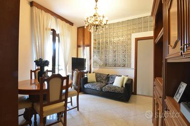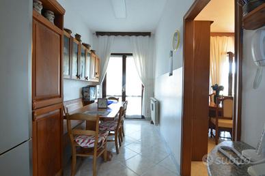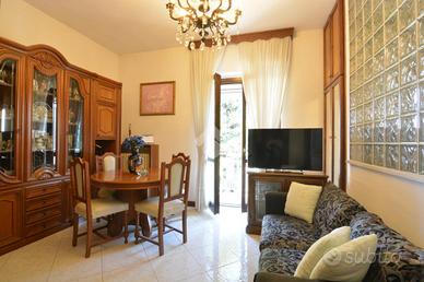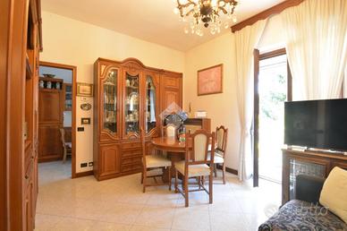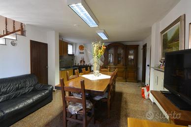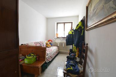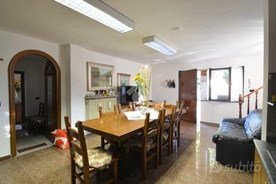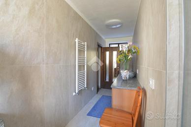 La scala interna in muratura conduce al piano superiore dove è collocato un trilocale di buona metratura composto da soggiorno con balcone coperto accessibile anche dalla cucina abitabile, servizio finestrato con vasca (anch'esso di recente rinnovo), camera da letto matrimoniale e seconda camera con balcone dedicato.