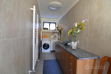 Il piano terra ospita l'ingresso, l'ampio locale taverna con camino, un primo servizio finestrato con doccia e zona lavanderia (di recente rinnovo), un locale tecnico/caldaia e un ulteriore ambiente cge può essere adibito a studio/camera da letto o zona hobby.